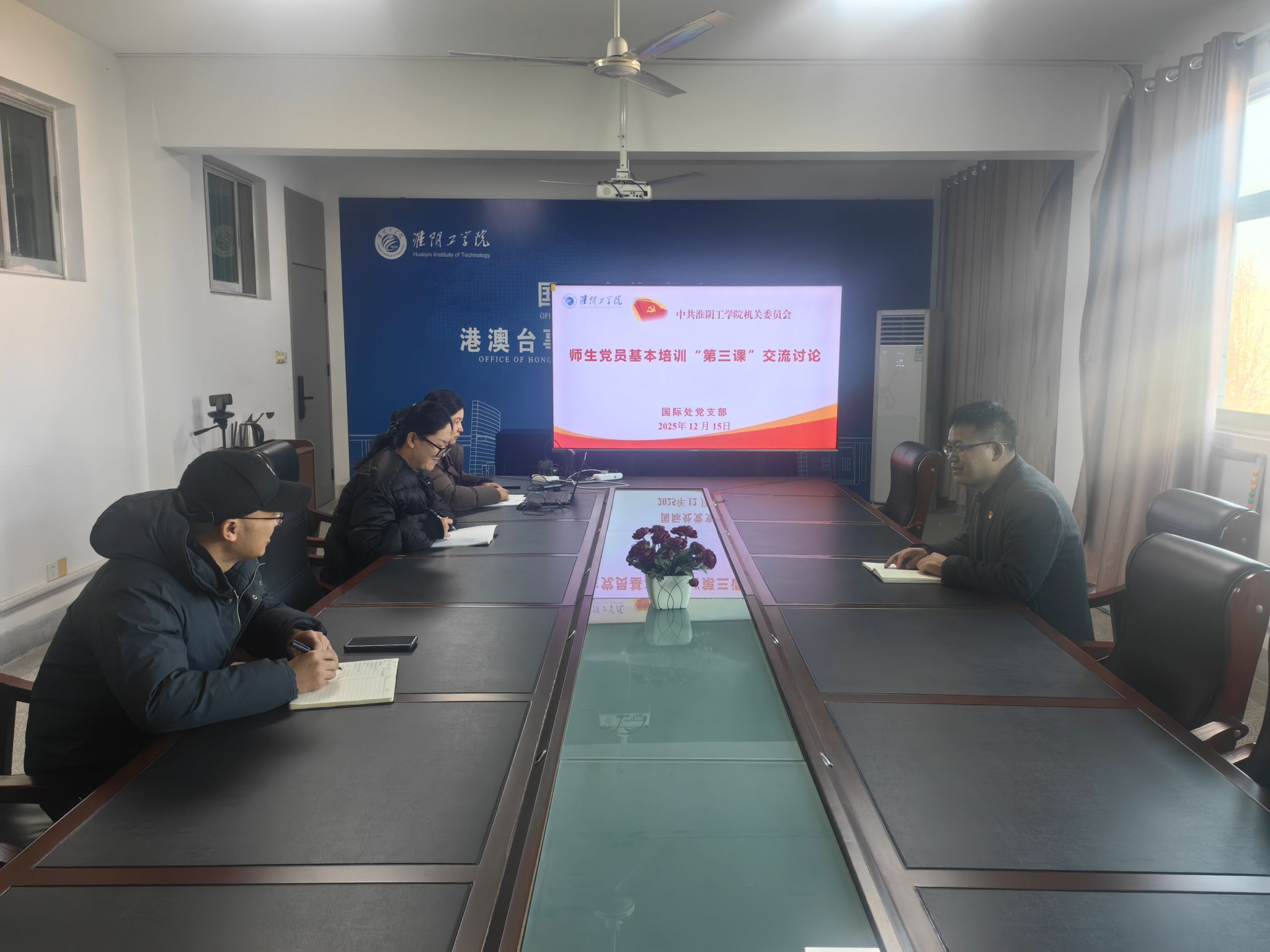 12月15日,国际合作交流处党支部召开党员基本培训2025年下半年第二次集中大课学习交流会。党支部书记洪坤主持会议,支部全体党员参加学习。