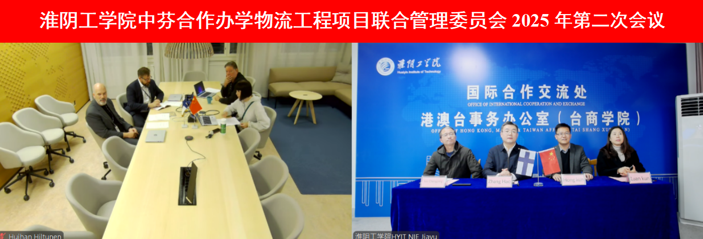 11月28日下午,我校与芬兰于韦斯屈莱应用科技大学通过远程视频方式召开中芬合作办学物流工程项目联合管理委员会会议。我校副校长张灏出席会议并致辞,芬兰于韦斯屈莱应用科技大学副校长米卡·卡尔亚莱宁及联合管理委员会成员参加会议。会议由国际合作交流处处长洪坤主持。